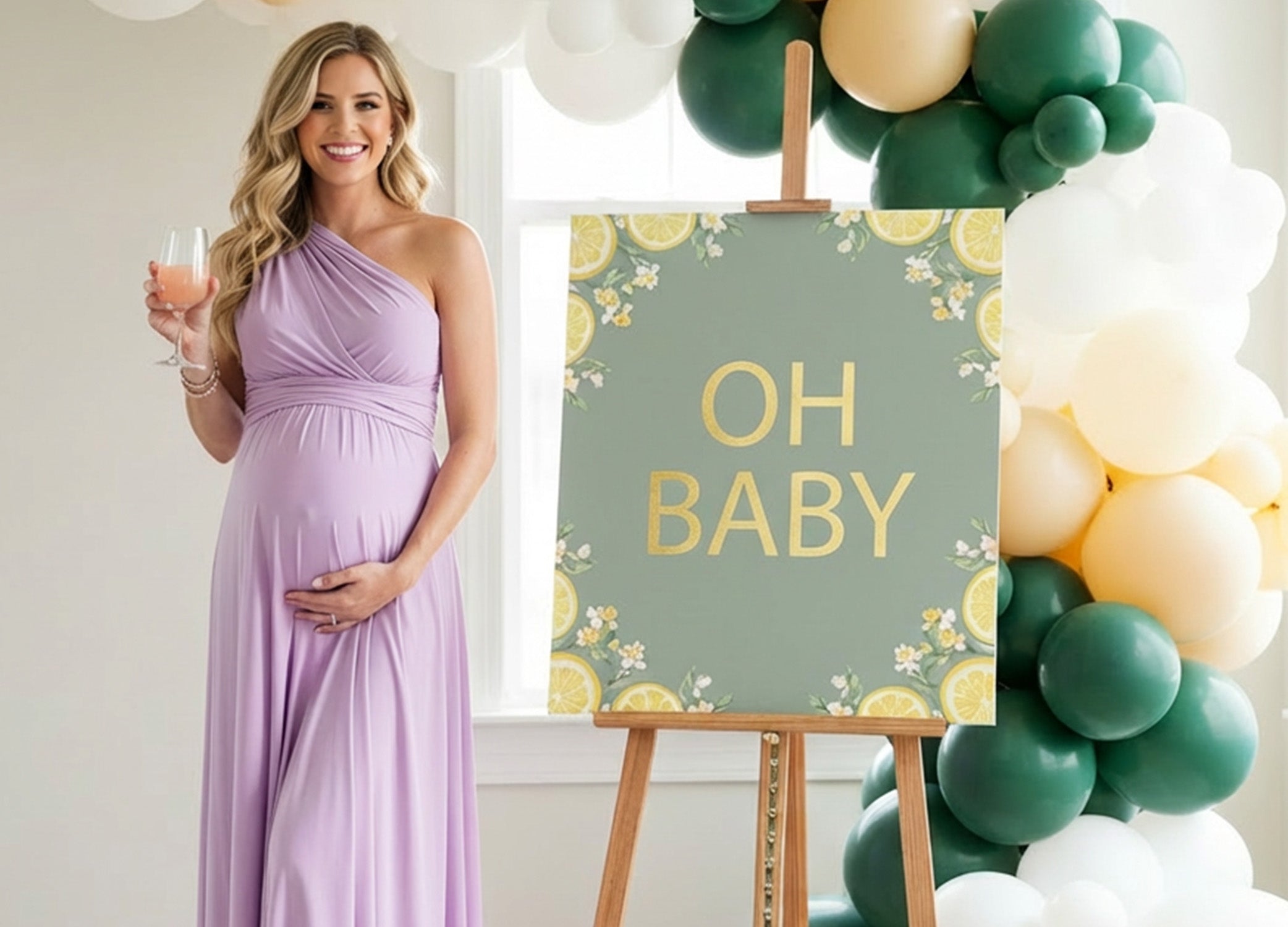 Nursing-friendly wrap techniques and discreet access points make feeding simple, while retaining a celebratory look for baby showers. Transition from party to practical without changing outfits.